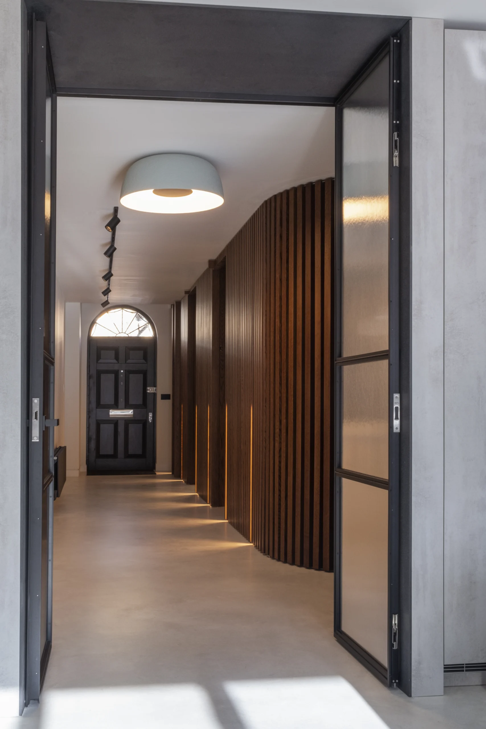 The goal of this project was to make the wall as less noticeable as possible but to become a cool future of the ground floor at the same time. It’s very hard to see secret doors in the wall, which was another great idea of the architect – to make the doors blended in to the wall, so one can’t tell there are some rooms behind