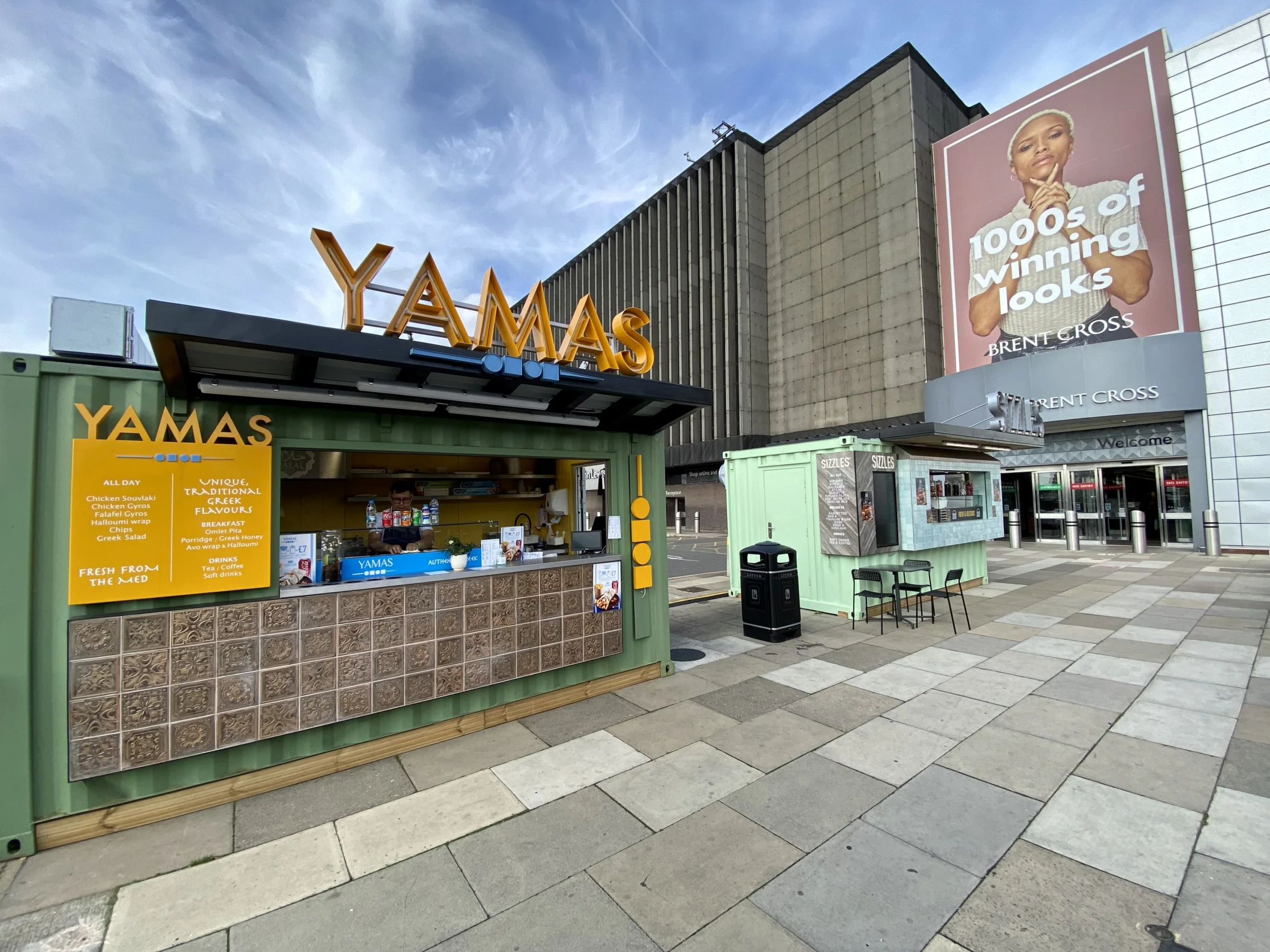 These kiosks at Brent Cross shopping centre may look like standard food stands at first glance, but the story behind them is far more unusual. The units were originally intended for Luton Airport, but after plans changed during the pandemic, they were repurposed for a new location.